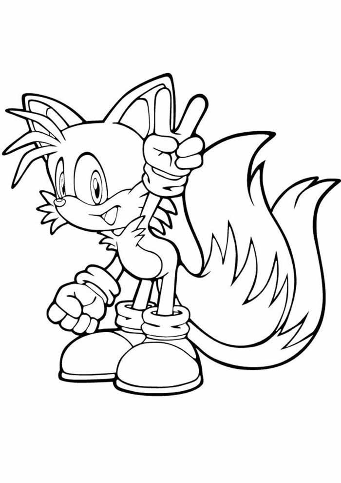 Tails tiene una doble cola que lo hace especial. Puedes colorear su cuerpo de color naranja claro o amarillo. Sus ojos y nariz se pueden pintar de color marrón. ¡No olvides dibujar sus dos colas y colorearlas de color blanco!